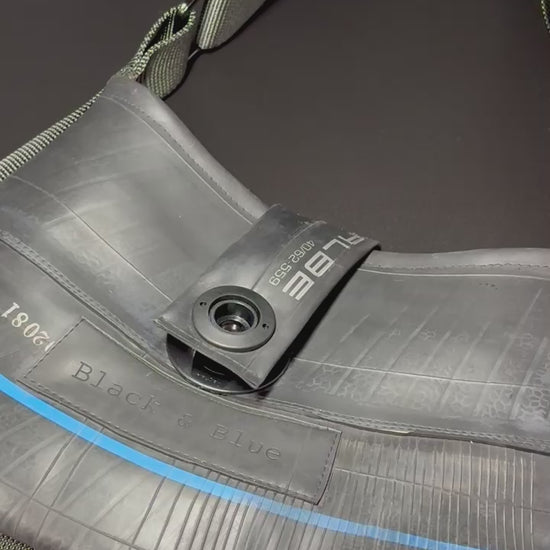 Crafted from upcycled bicycle inner tubes, this shoulder bag is a statement of circular design and urban functionality. Each piece carries the natural marks, lines, and textures of its previous life, making every bag truly one of a kind.